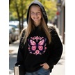 Kışlık Kapüşonlu Sweatshirt, Çocuk Pembe Kelebek Baskılı SiYAH