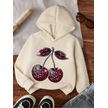 Kışlık Kapüşonlu Sweatshirt, Çocuk Pırlanta Kiraz Baskılı Bej