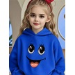 Kışlık Kapüşonlu Sweatshirt, Çocuk Sevimli Gülücük Desen Mavi