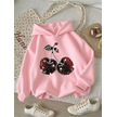 Kışlık Kapüşonlu Sweatshirt, Çocuk We Kiraz Baskılı Pembe