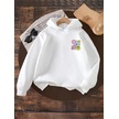 Kışlık Kapüşonlu Sweatshirt, Çocuk Yanda Çiçekler Gülücükler Baskılı BEYAZ