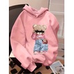 Kışlık Kapüşonlu Sweatshirt, Kız Çocuk Karikatür Baskılı Kapüşonlu, Pembe