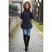 Kışlık Kapüşonu Suni Kürklü Şık Orta Boy Kadın Siyah Mont Siyah