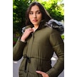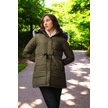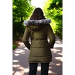 Kışlık Orta Boy Kapüşonlu Kürklü Şişme Kadın Mont Haki