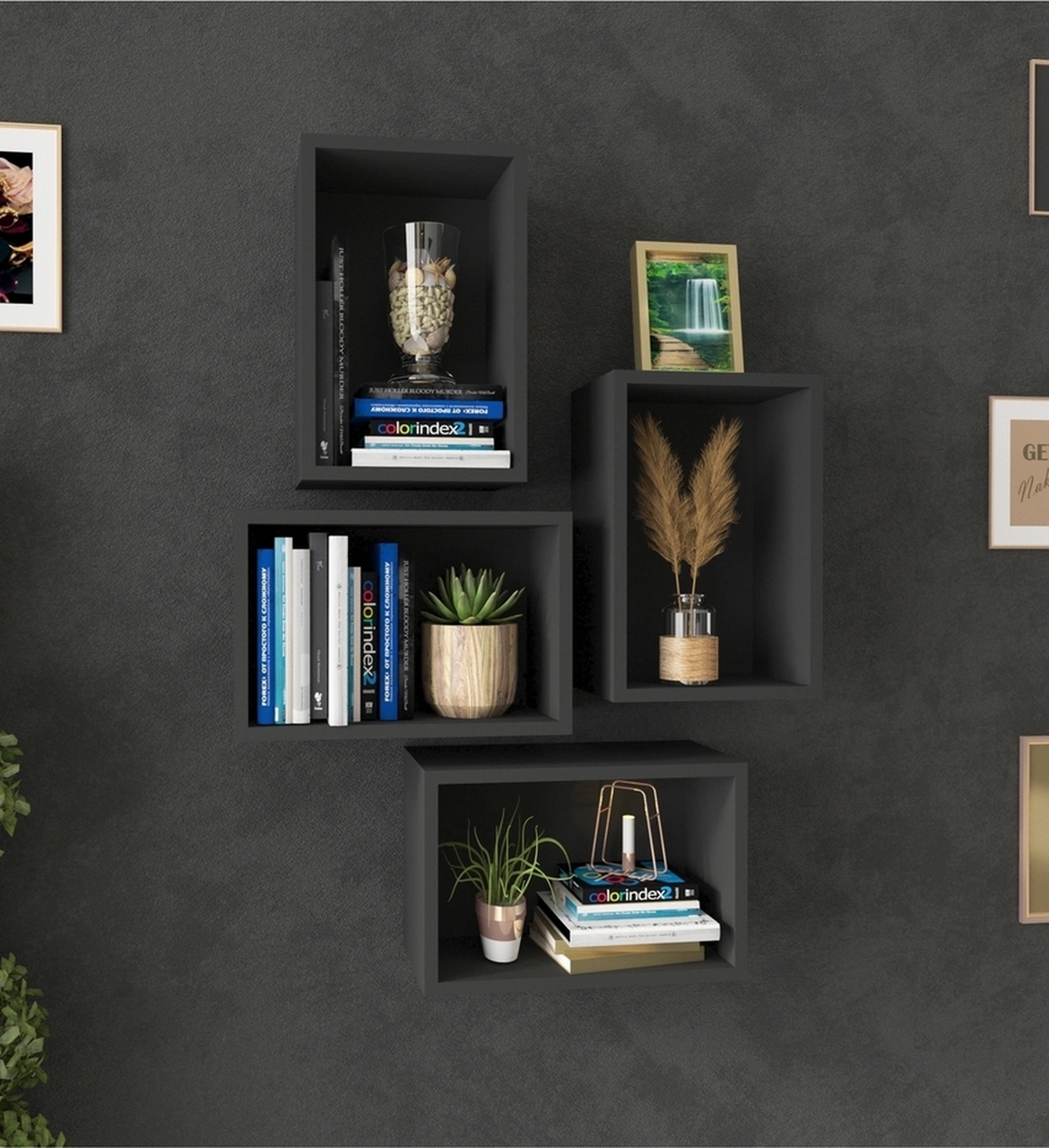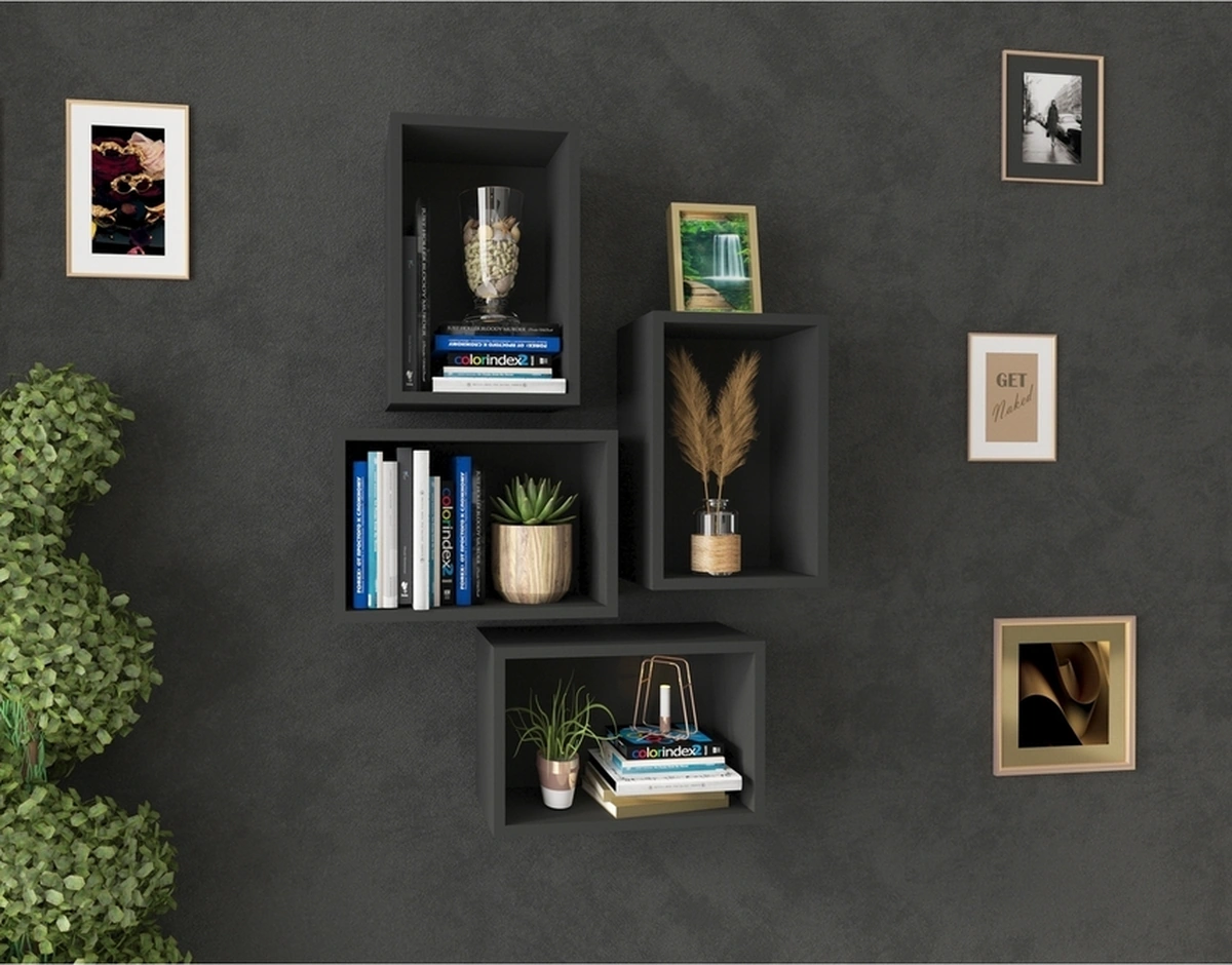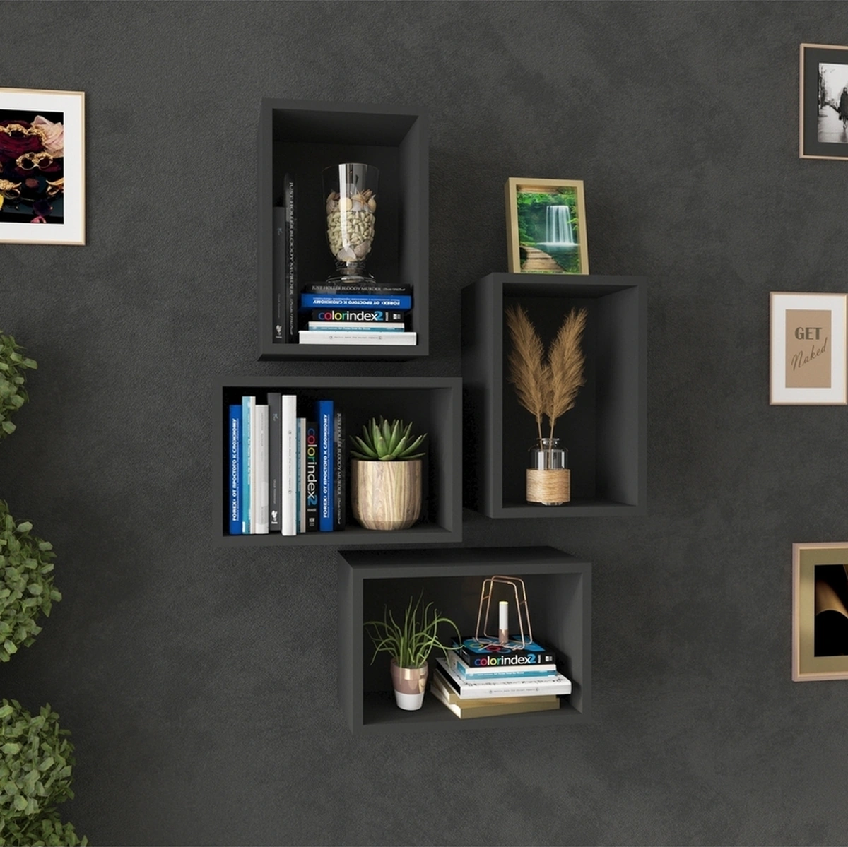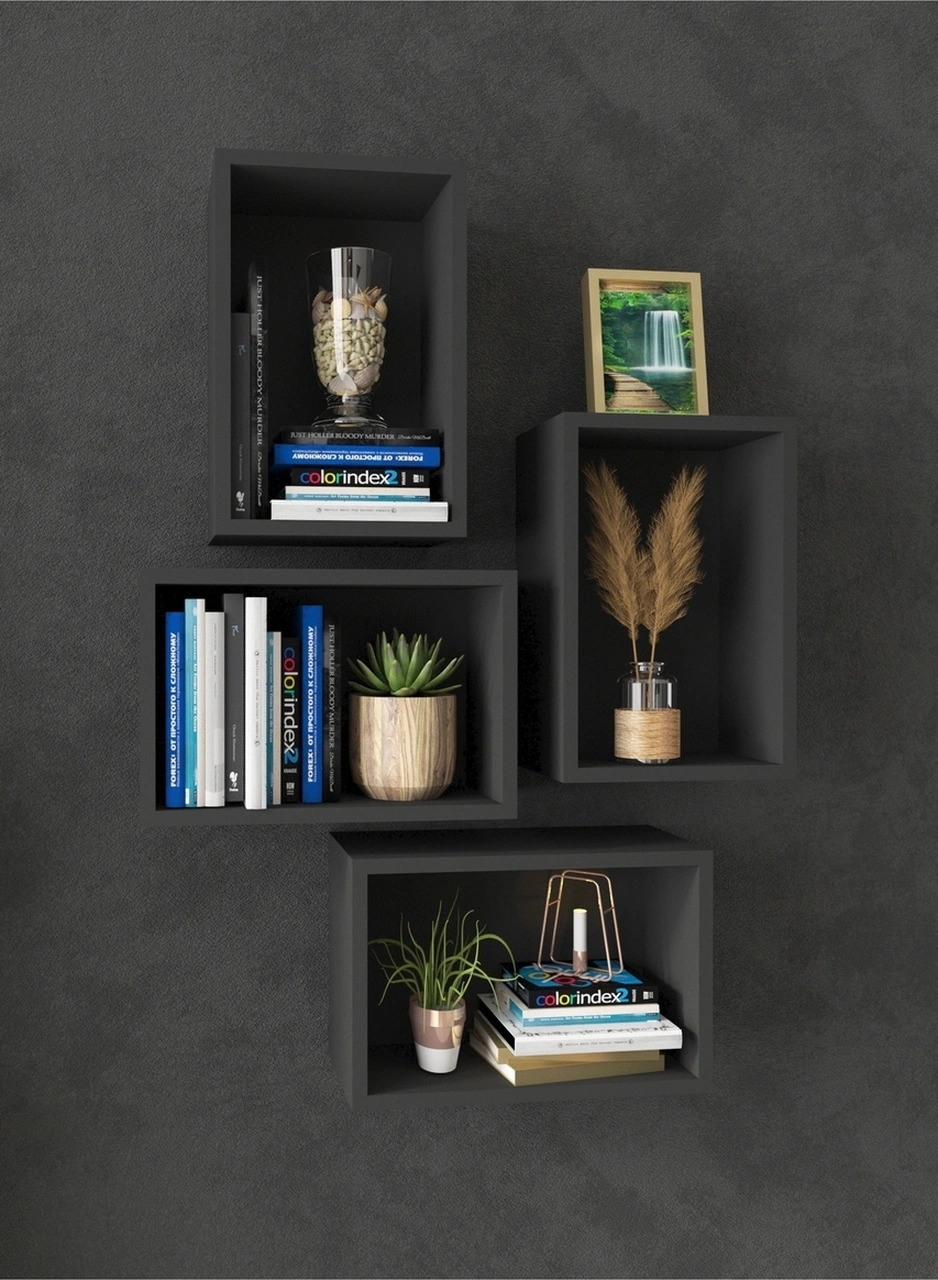 Kitaplık Dikdörtgen Duvar Rafı Arkalıklı Mobilya Takım Antrasit Antrasit