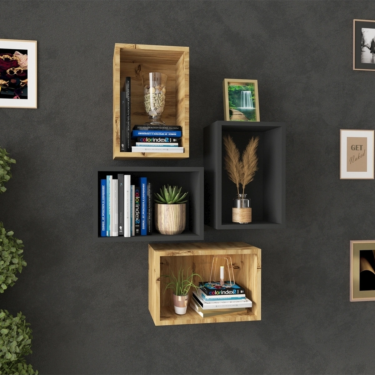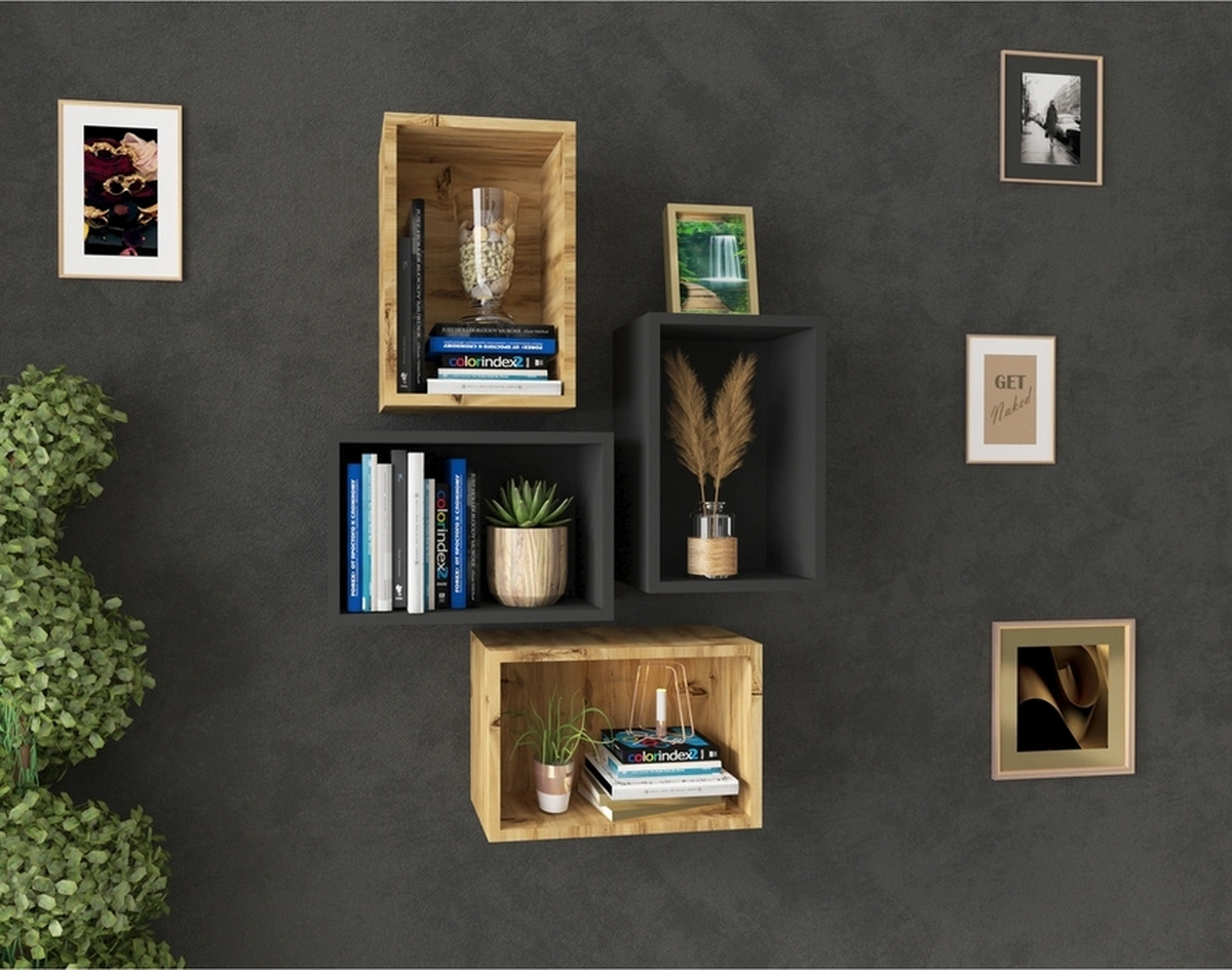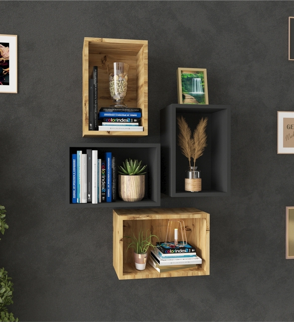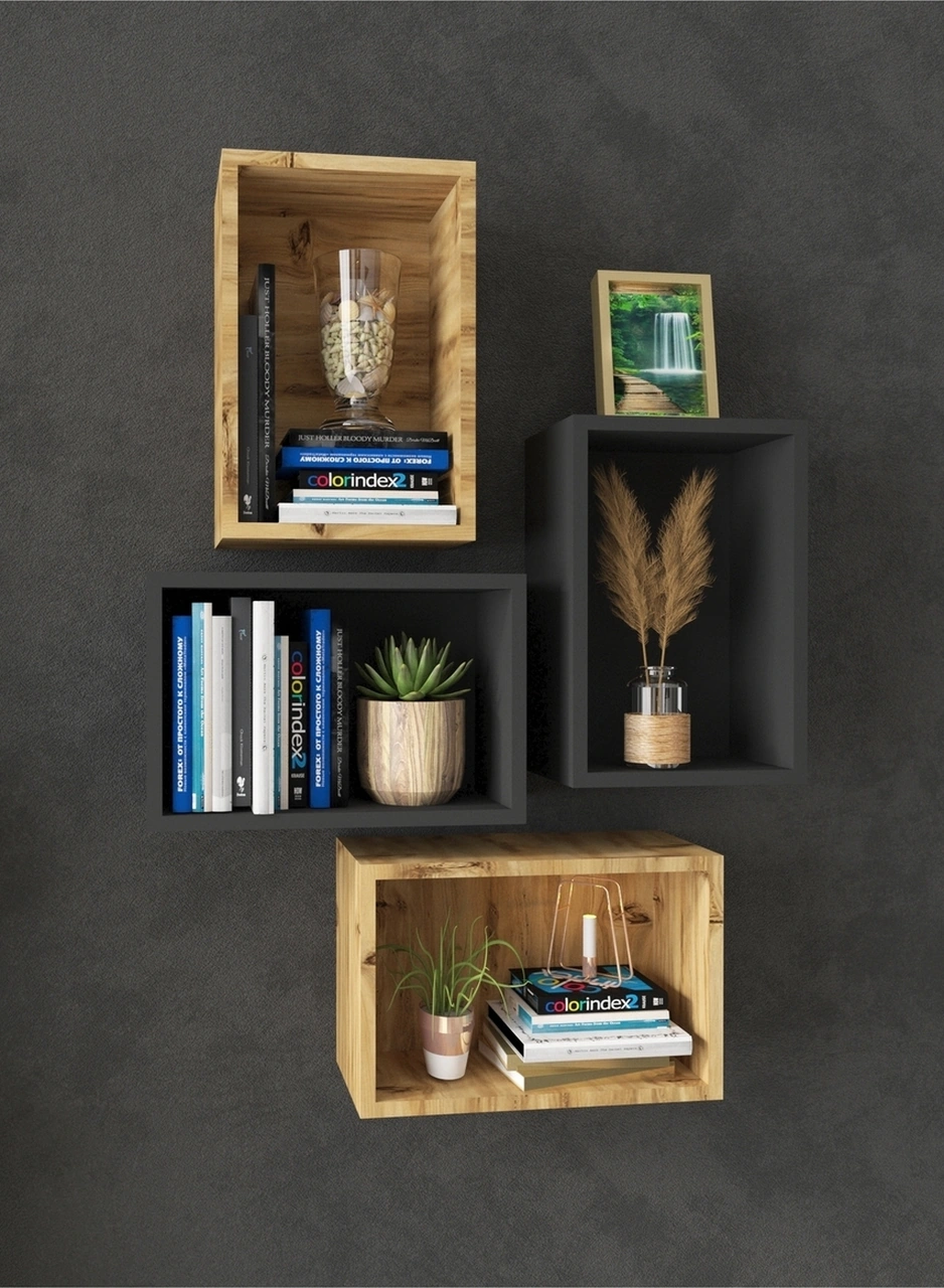 Kitaplık Dikdörtgen Duvar Rafı Arkalıklı Mobilya Takım Antrasit Atlantik Çam Atlantik Çam Antrasit