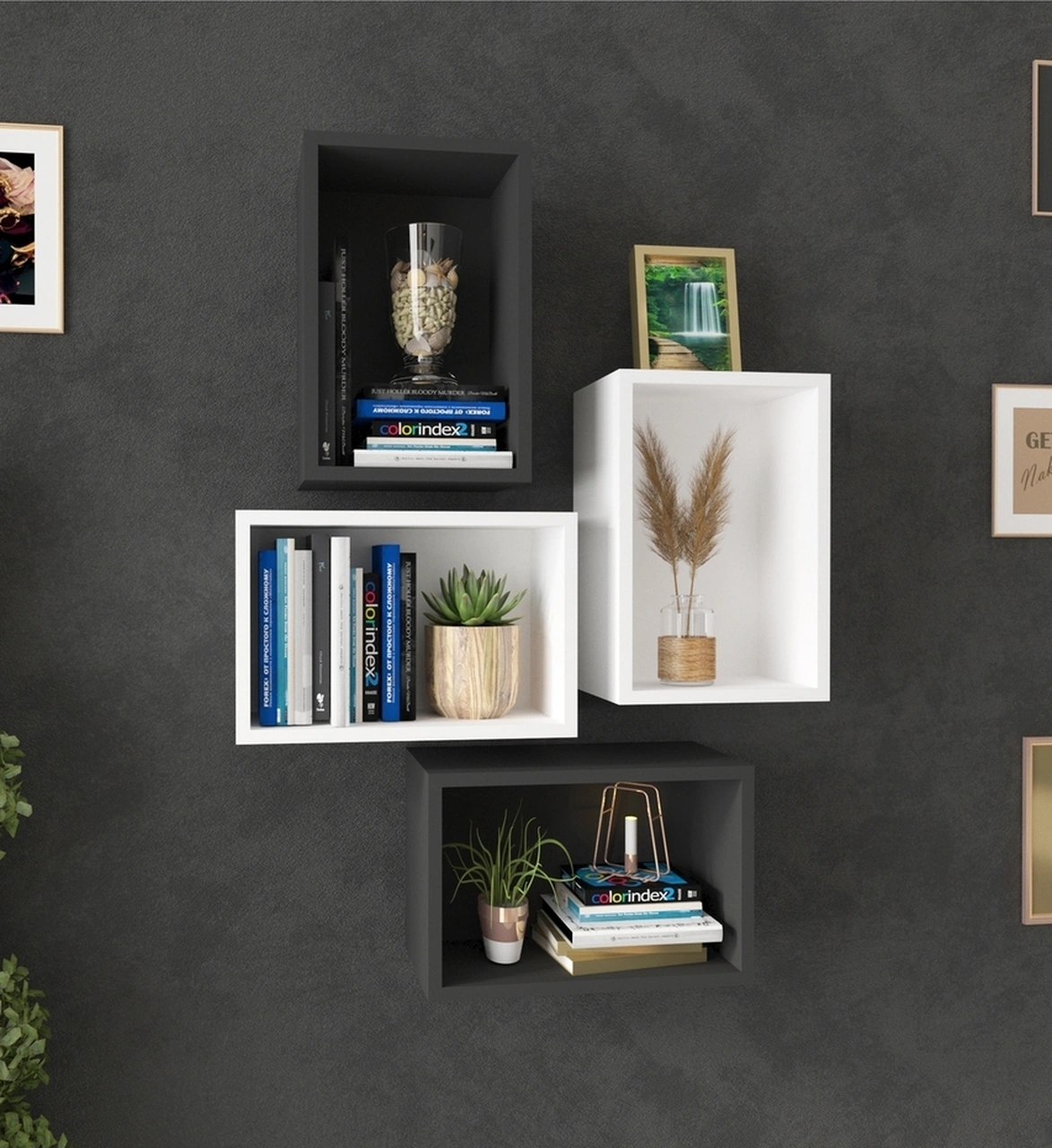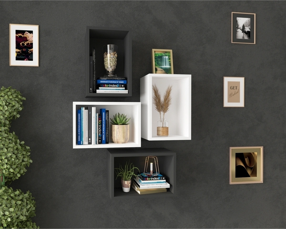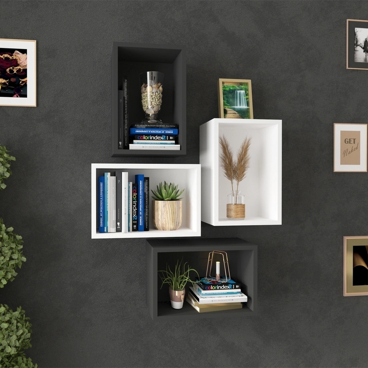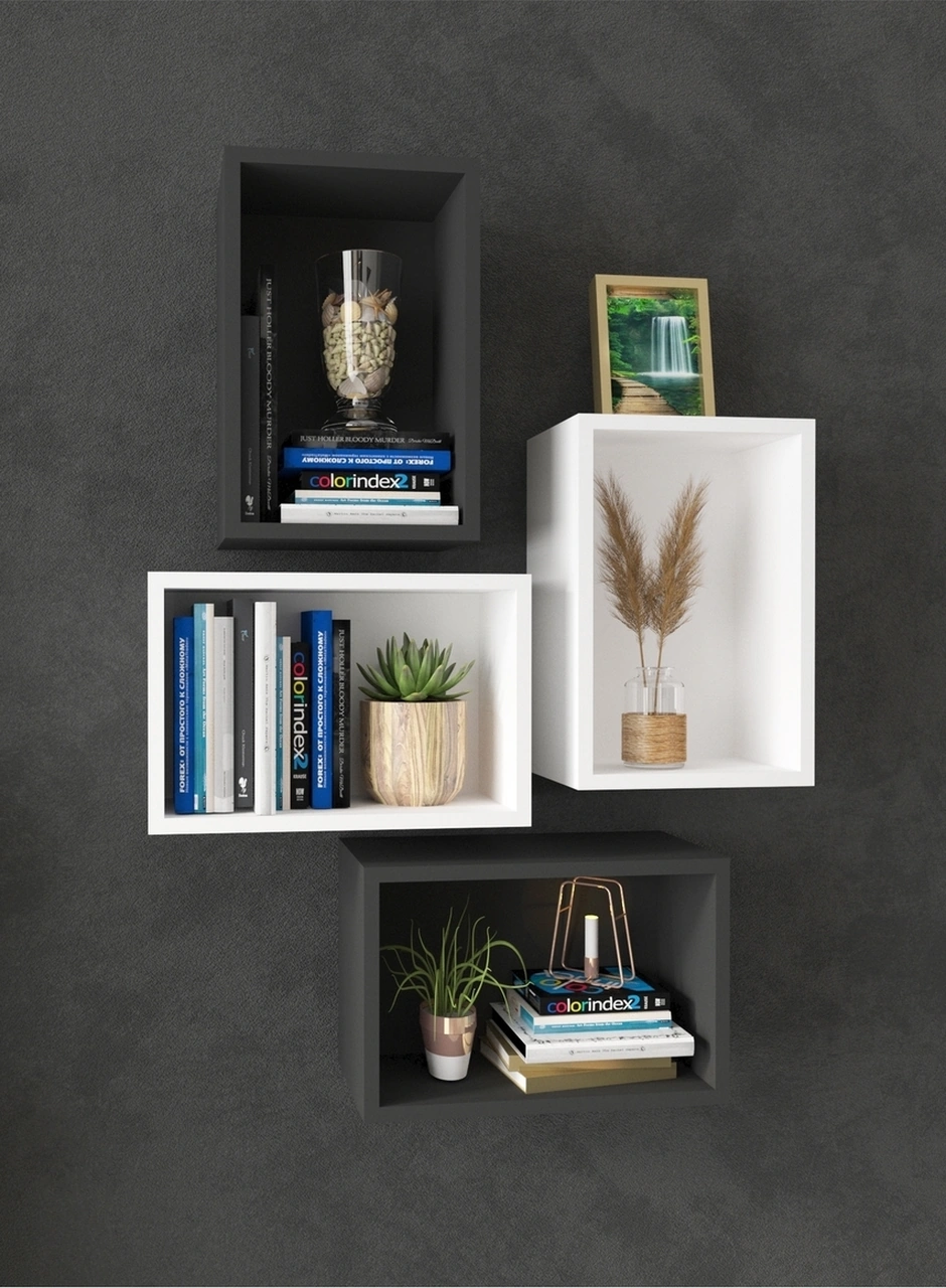 Kitaplık Dikdörtgen Duvar Rafı Arkalıklı Mobilya Takım Beyaz Antrasit Beyaz Antrasit