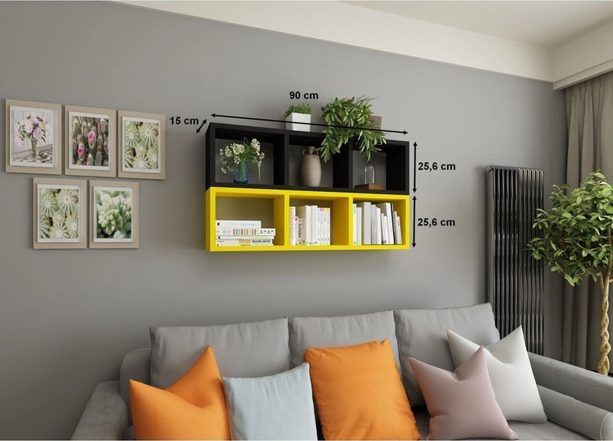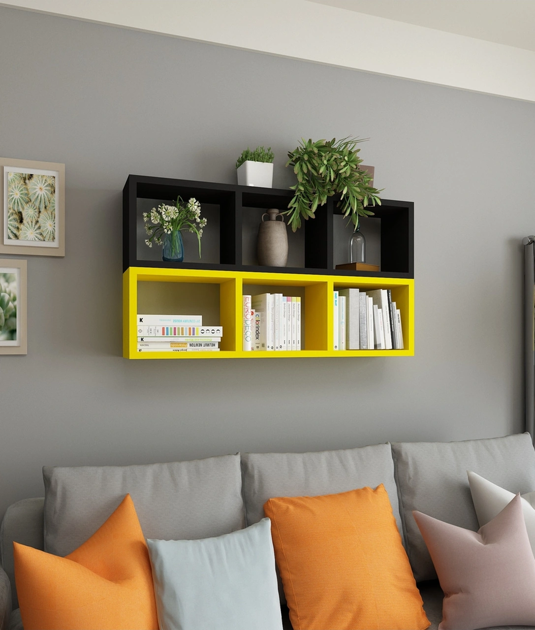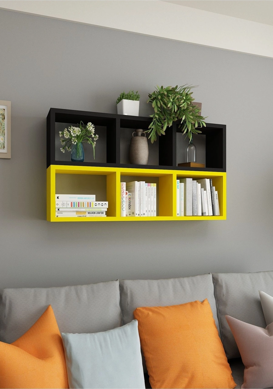 Kitaplık Duvar Rafı Mobilya Ikili Renkli Takım Sarı Siyah Sarı-siyah