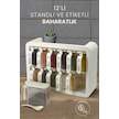 Kitchen Life 12 li Standlı Kendinden Yapışkanlı Kapaklı Kaşıklı Baharatlık Takımı - Kulplu Baharatlık Standı Bej