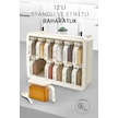 Kitchen Life 12'li Bej Standlı Kendinden Yapışkanlı Kaşıklı Standlı Baharatlık Takımı - Kapak Etiketli Baharatlık Bej
