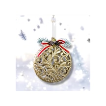 Kıvrımlı Desenli Yuvarlak Yılbaşı Süsü Şampanya 14 Cm