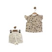 Kız Bebek Bluzu Fırfırlı Çiçek Desenli Şort Takım-13867 Bej