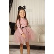 Kız Bebek-çocuk Uzun Kollu Doğum Günü Ve Özel Günler İçin Kalpli Tüllü Astarlı Elbise Gül Kurusu Gülkurusu