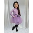 Kız Bebek-çocuk Uzun Kollu Doğum Günü Ve Özel Günler İçin Kalpli Tüllü Astarlı Elbise Lila