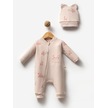 Kız Bebek Desenli Şapkalı Tulum-15304 Bej