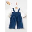 Kız Bebek Jean Püsküllü Salopet Ve Pamuklu Body 2'li Takım Koyu Mavi