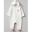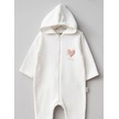 Kız Bebek Kalp Desenli Kapüşonlu Fermuarlı Tulum-15261 Ekru
