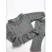 Kız Bebek Kareli Bebek Yaka Örme Pantolonlu Takım-14882 Gri