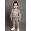 Kız Çocuk %100 Pamuk Gül Baskılı Eşofman Takımı Yeşil