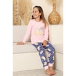 Kız Çocuk Desenli Düğmeli Uyku Bantlı Alt Üst Pijama Takım Pembe
