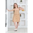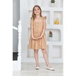 Kız Çocuk %100 Pamuk Keten Elbise 12197 Açık Kahve Açık Kahverengi