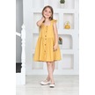 Kız Çocuk %100 Pamuk Keten Elbise 12197 Hardal