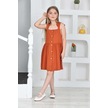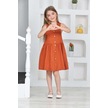 Kız Çocuk %100 Pamuk Keten Elbise 12197 Kiremit