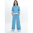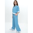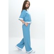 Kız Çocuk %100 Pamuk Kısa Kollu Garnili Truvakar Kol 2 İplik Alt&üst Eşofman Takımı-285-eşt-0011 Mavi