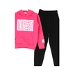 Kız Çocuk 2 İplik Küfe Yazı Görselli Kapüşonlu Alt-üst Takım 12374 Pembe
