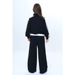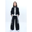 Kız Çocuk 2 İplik Yarım Fermuarlı Garnili Eşofman Takımı %100 Pamuk Rahat Kalıp-325 Siyah