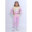 Kız Çocuk 3 İplik Eşofman Takımı Kedi Baskılı E4 LİLA
