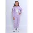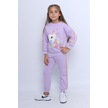 Kız Çocuk 3 İplik Eşofman Takımı Unicorn Baskılı Şeritli C25 LİLA