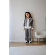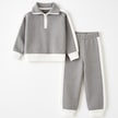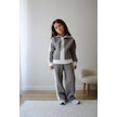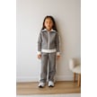 Kız Çocuk 3 İplik Şardonlu Beyaz Şeritli Alt Üst Takım Yaka Yarım Fermuarlı Gri