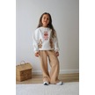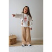 Kız Çocuk 3 İplik Şardonlu Peluş Baskı Detaylı Sweatshirt - Eşofman Alt Üst Takım 3riple Ekru
