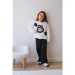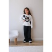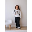 Kız Çocuk 3 İplik Şardonlu Peluş Baskı Detaylı Sweatshirt - Eşofman Alt Üst Takım Siyah Beyaz