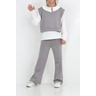 Kız Çocuk 3'lü Takım Pantolon+yelek+bluz 12429 Gri