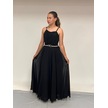 Kız Çocuk Abiye Askılı Siyah Şifon Drape Ve Taş Detaylı Abiye Elbise 10-15 Yaş Siyah