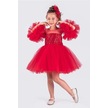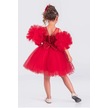Kız Çocuk Abiye Elbise Ponpon Kol Pul Payetli Tütülü Kırmızı