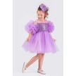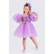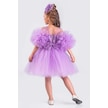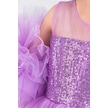 Kız Çocuk Abiye Elbise Ponpon Kol Pul Payetli Tütülü Lila