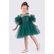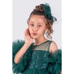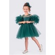 Kız Çocuk Abiye Elbise Ponpon Kol Pul Payetli Tütülü Yeşil