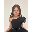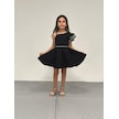 Kız Çocuk Abiye Siyah Kısa Tek Omuz Gül Detaylı Krep Kumaş Abiye Elbise 5-10 Yaş Siyah