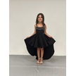 Kız Çocuk Abiye Siyah Saten Kuyruklu Yaka Şerit Taşlı Abiye Elbise 5-10 Yaşyaş Siyah