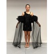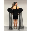 Kız Çocuk Abiye Siyah Tek Omuz Asimetsik Kesim Pul Payet İşlemeli Tül Kol Detaylı 10-15 Yaş Siyah