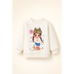 Kız Çocuk Aplike Bere Ve Düğme Detaylı Baskılı 3 İplik Şardonlu Alt Üst Takım Krem Pembe
