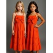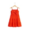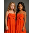 Kız Çocuk Askılı Fiyonklu Dokuma Elbise-16076 Turuncu