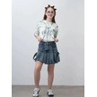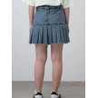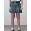 Kız Çocuk Askılı Pileli Tasarım Denim Etek-15535 Mavi