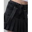 Kız Çocuk Askılı Pileli Tasarım Denim Etek-15535 Siyah