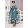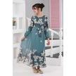 Kız Çocuk Astarlı Tam Boy Çiçek Desenli İç Göstermeyen Şık Ve Rahat Uzun Elbise Yeşil