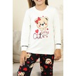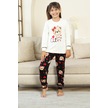 Kız Çocuk Ayıcık Baskılı %100 Pamuk İnterlok Kumaş Pijama Takımı 12347 Ekru