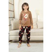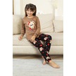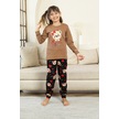 Kız Çocuk Ayıcık Baskılı %100 Pamuk İnterlok Kumaş Pijama Takımı 12347 Kahverengi